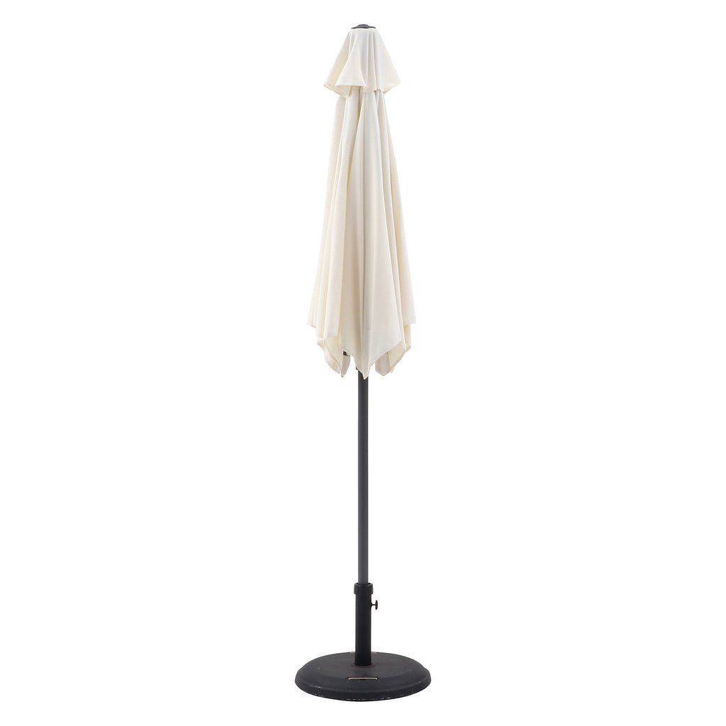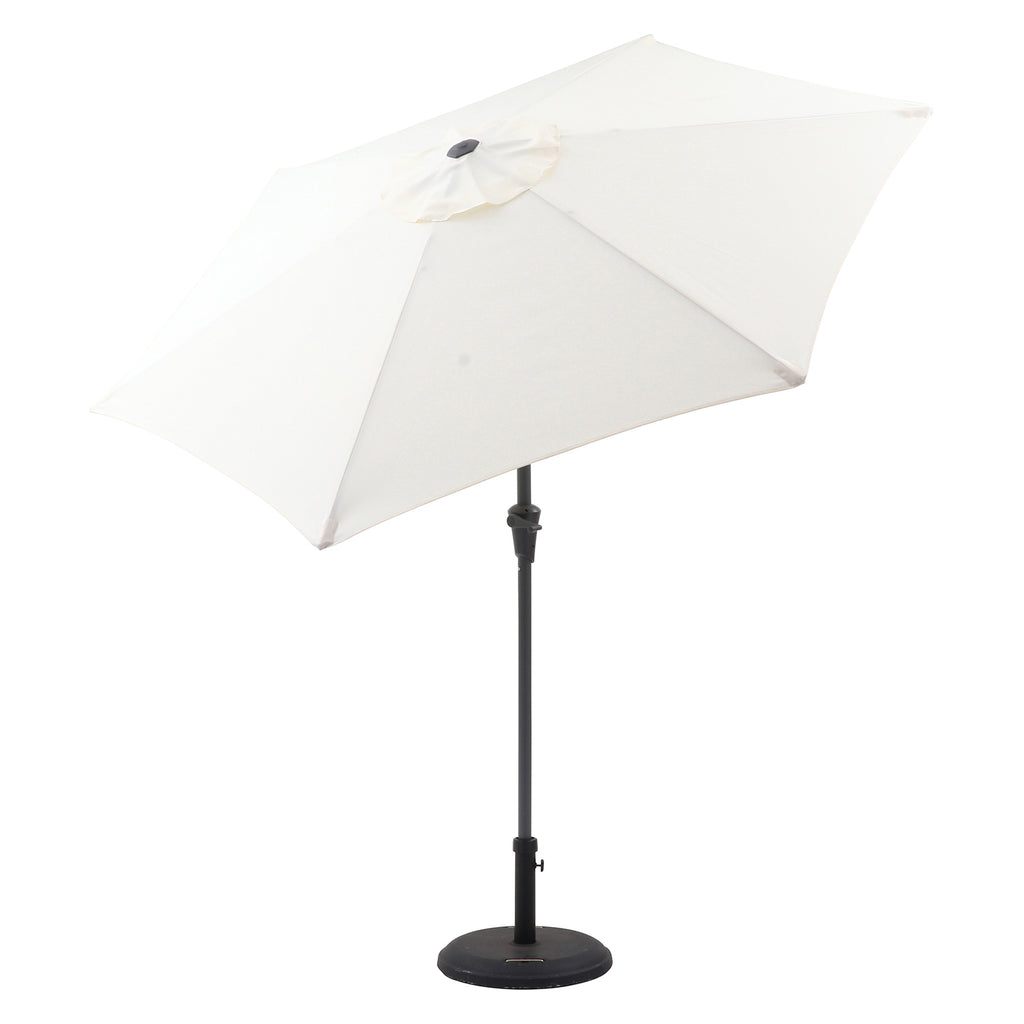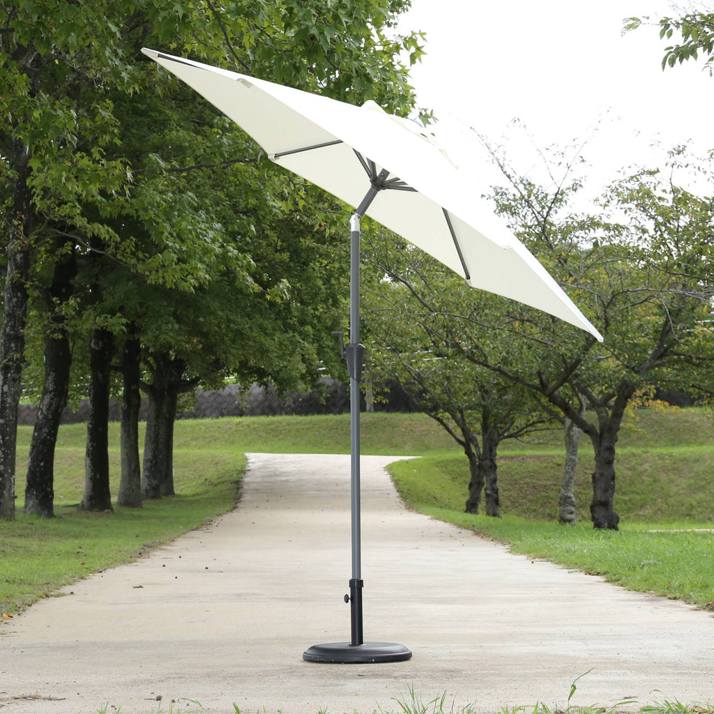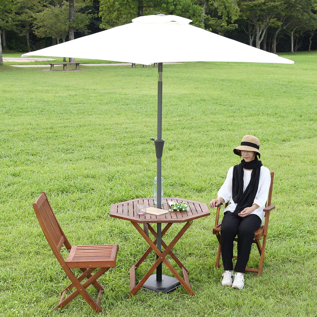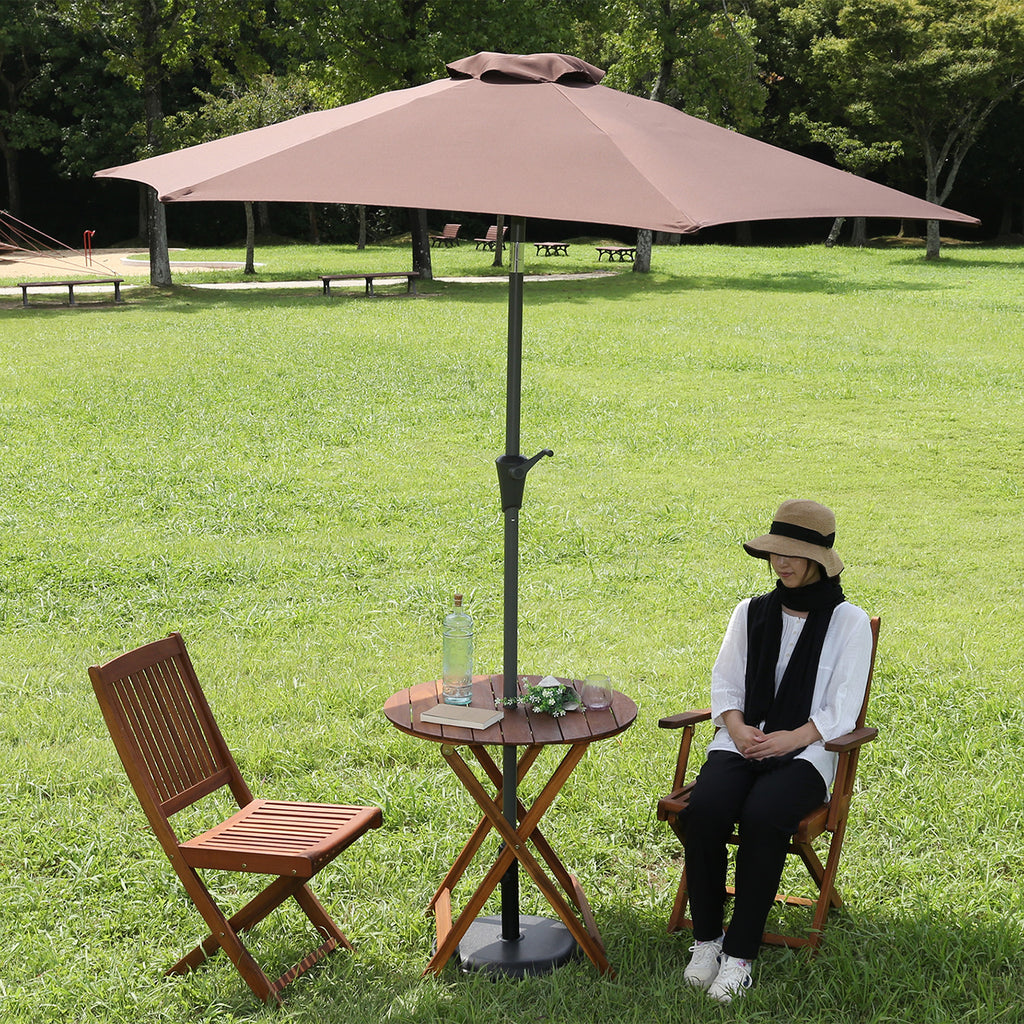軽量なアルミ支柱を採用し、クランク開閉とチルト機能を備えた屋外用パラソルです。簡単操作で開閉できるうえ、日差しの向きに合わせて傘の角度を調整できるため、快適な屋外空間づくりに役立ちます。