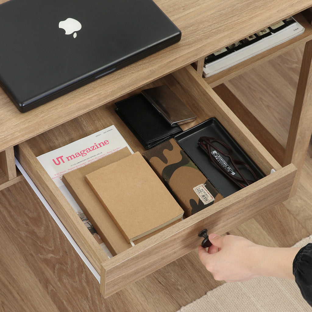 小物や文具をすっきり整理できる引き出し収納付き