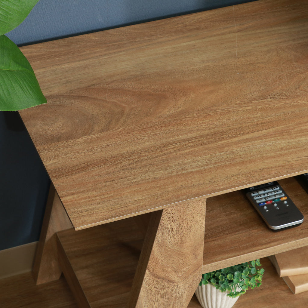在宅ワークからテレビ台まで対応、引き出し&オープン収納付き木目調デスク