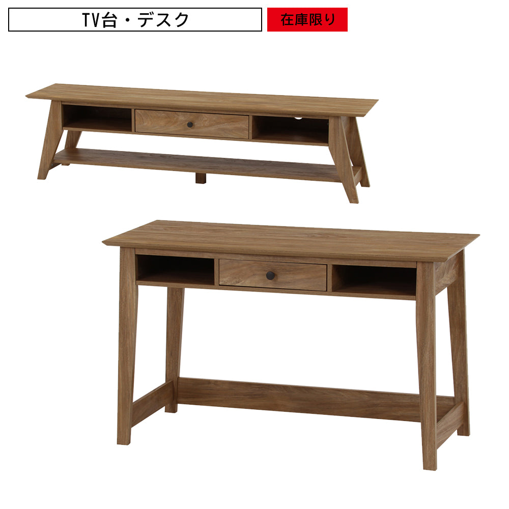 在宅ワークや勉強用のデスクとしてはもちろん、ローデスクタイプはテレビ台やディスプレイラックとしても使えるデスクです。ヴィンテージ感のある木目調のナチュラルなデザインで、書斎からリビングまで幅広い空間に馴染みます。