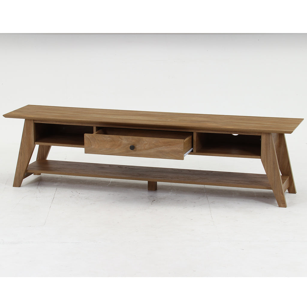 中央には引き出し収納、左右にはオープン収納を備えており、文房具や小物、書類、AV機器などを用途に応じて整理できます。見せる収納と隠す収納を使い分けることで、空間をすっきり保てるのが特長です。