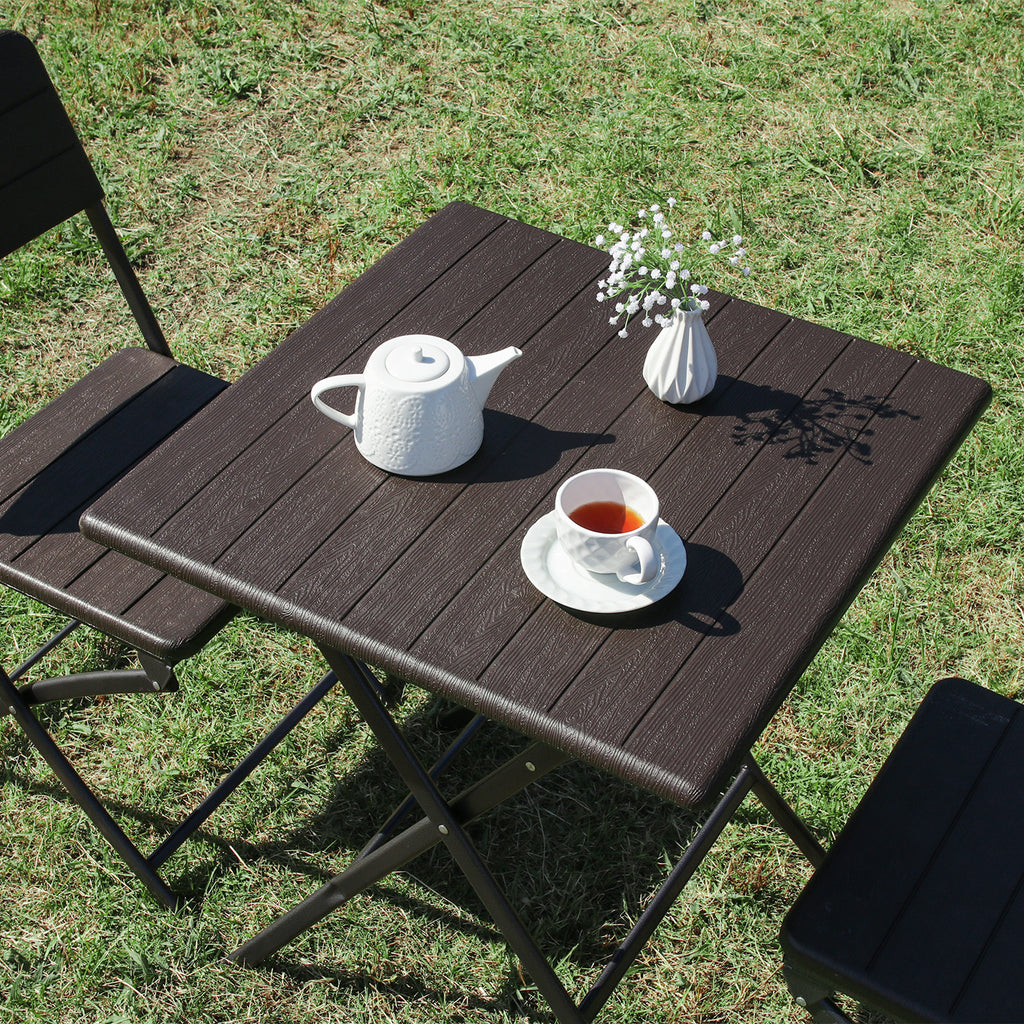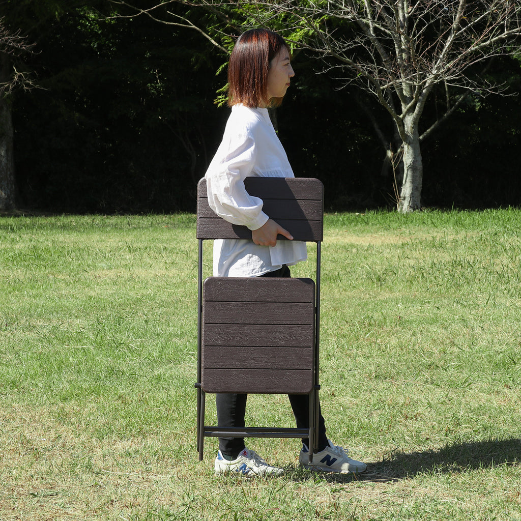 テーブルもチェアもすべて折りたたみが可能な設計になっています。使わない時はコンパクトに折りたたんで、ベランダの隅や物置の隙間にスッキリと収納できるため、必要な時だけサッと広げて使うというスタイルに最適です。