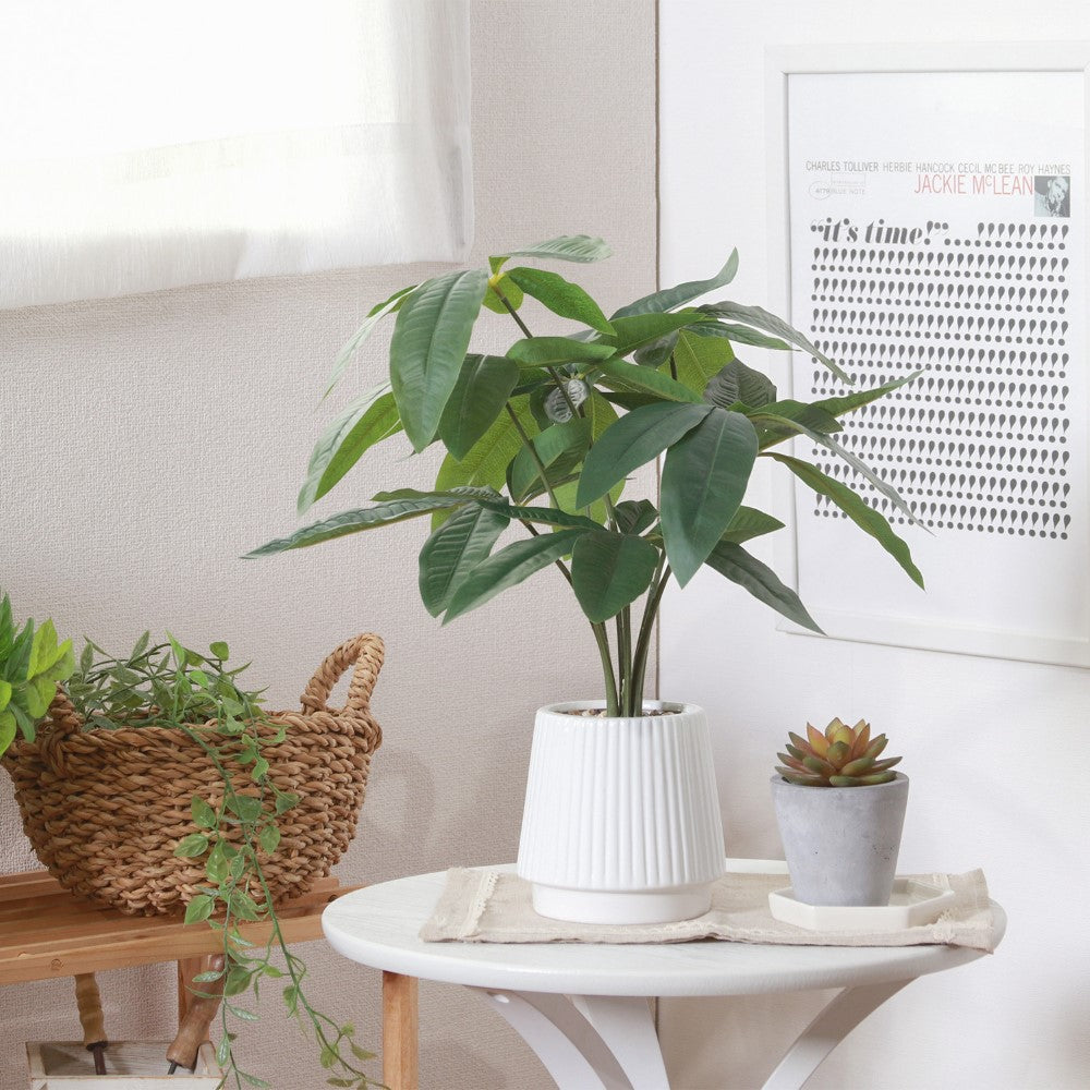 パキラ セラミックポット 【サイズ】本体:W440×D400×H430mm 鉢:Φ120*H120mm 【重量】0.6kg 【素材】葉・幹:ポリエチレン/スチール 鉢:セラミック/発砲スチロール/石 |