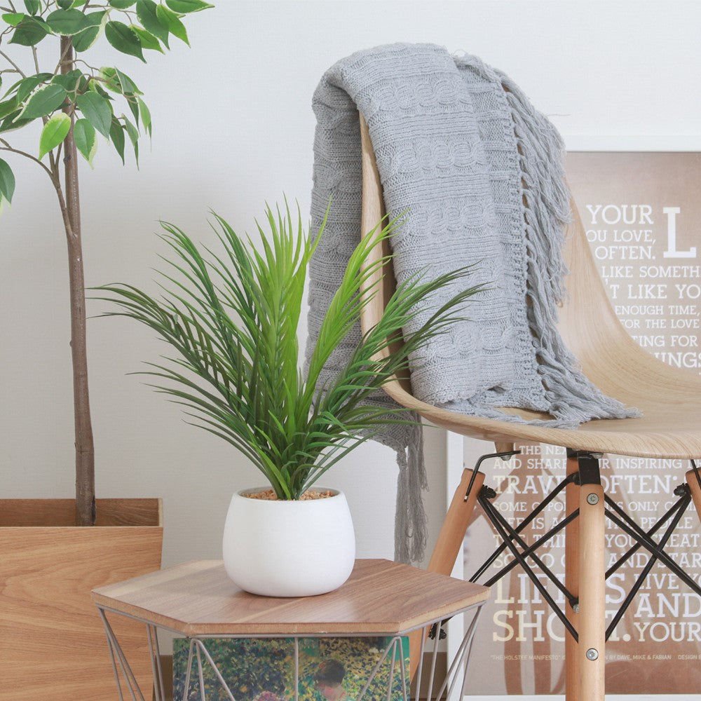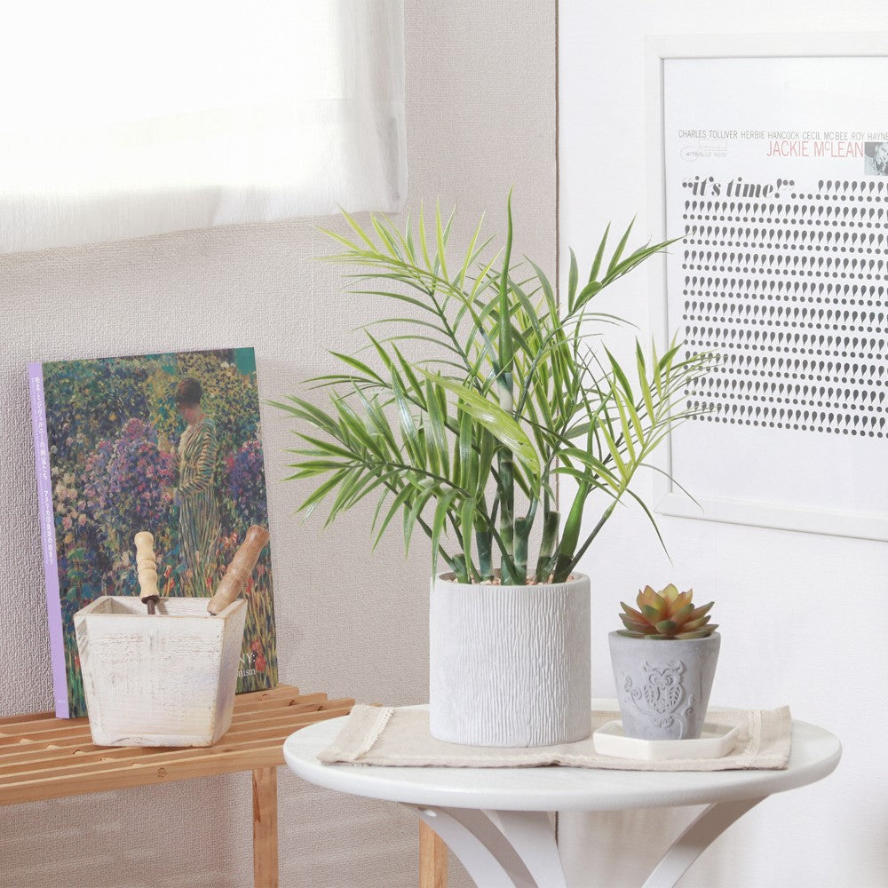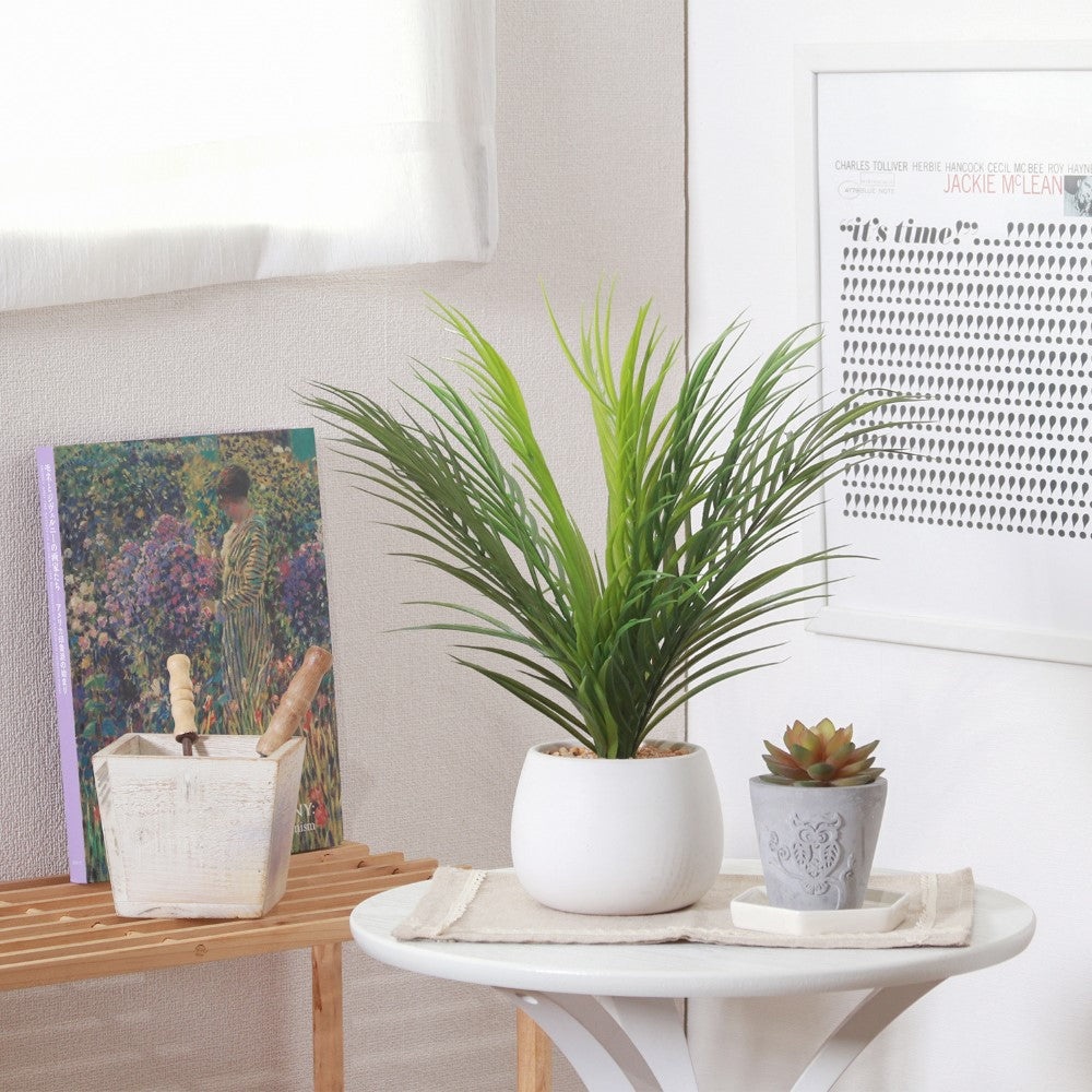 ヤシ セラミックポット 【サイズ】本体:W380×D340×H360mm 鉢:Φ120*H90mm 【重量】0.6kg 【素材】葉・幹:ポリエチレン/スチール 鉢:セラミック/発砲スチロール/石 |