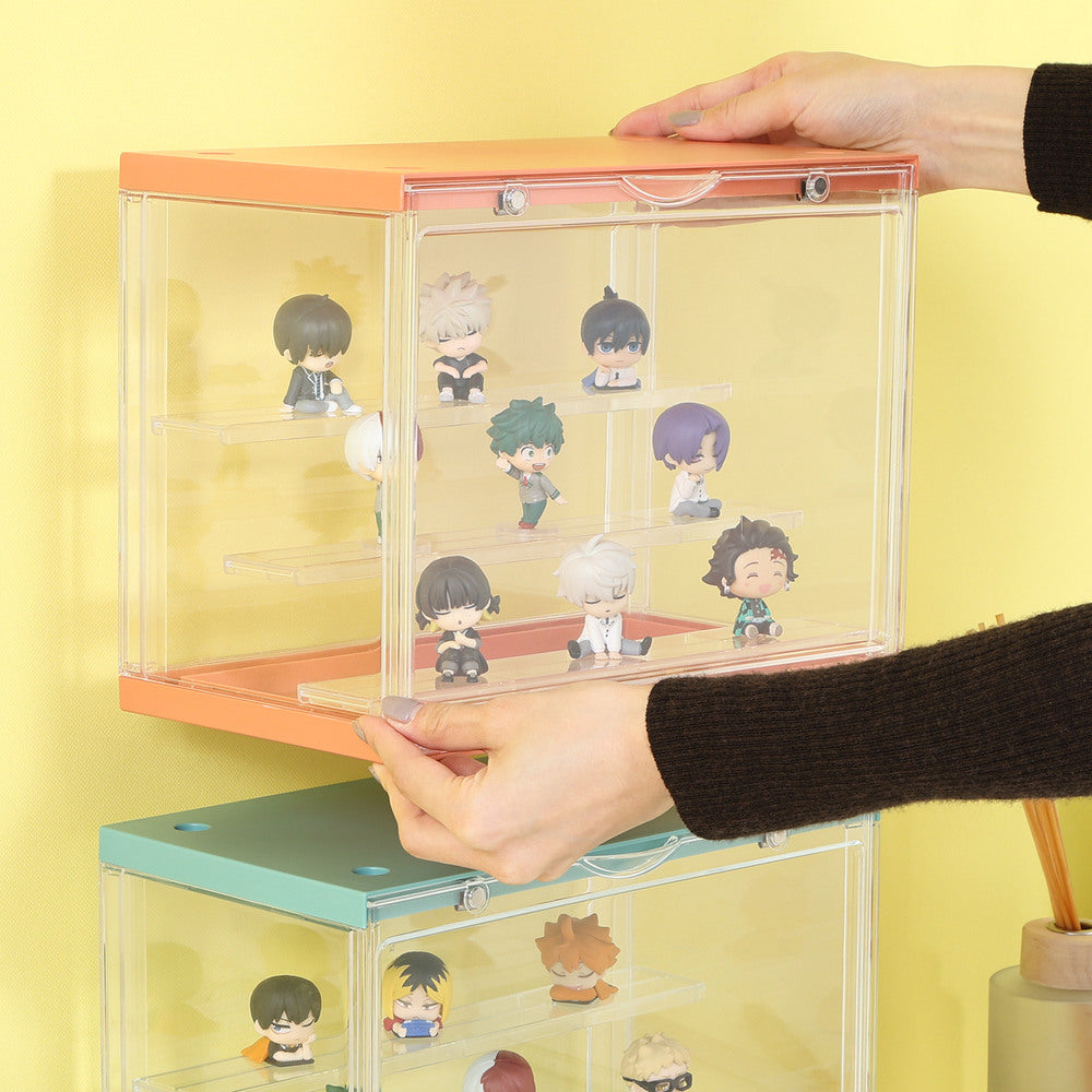 ひな壇式でどの角度からも美しく、スタッキング可能なコレクションケース!