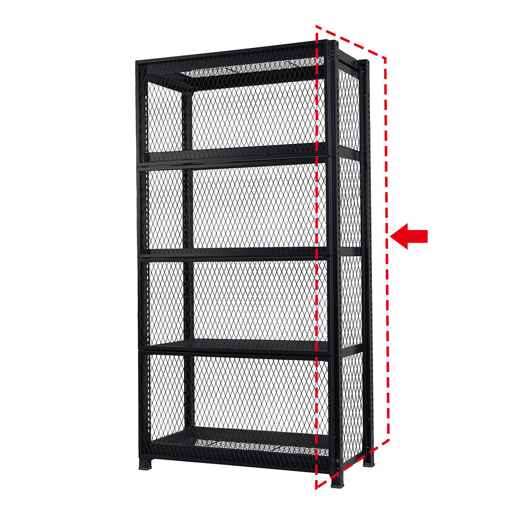 メッシュラックの側面に設置することで、収納物の落下防止や安全性の向上に役立ちます。