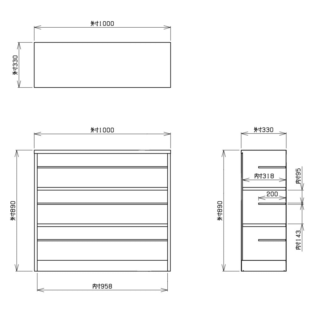 外寸法 W1000×D330×H890mm