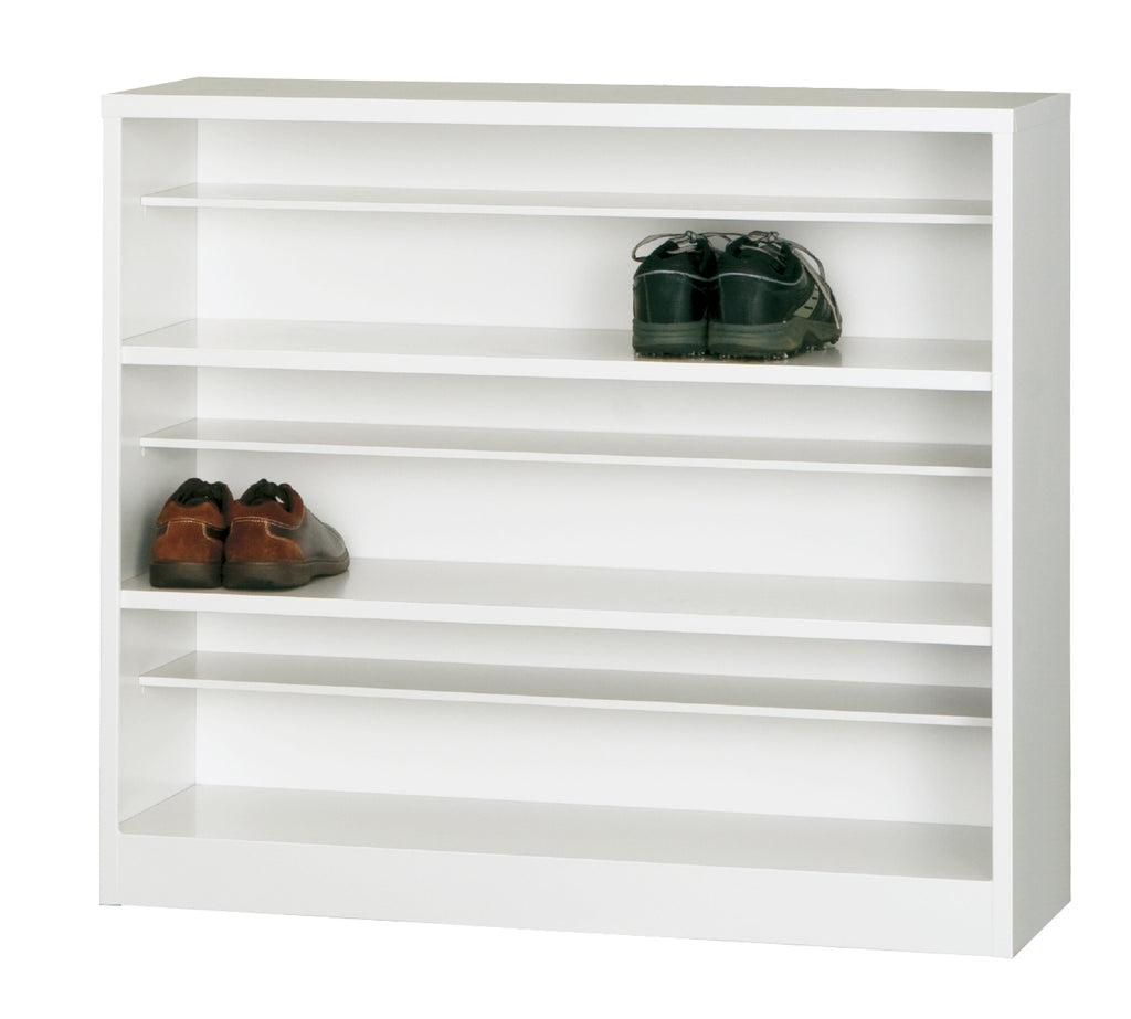 中棚付きで靴を整理しやすい12人用オープンタイプシューズロッカー。