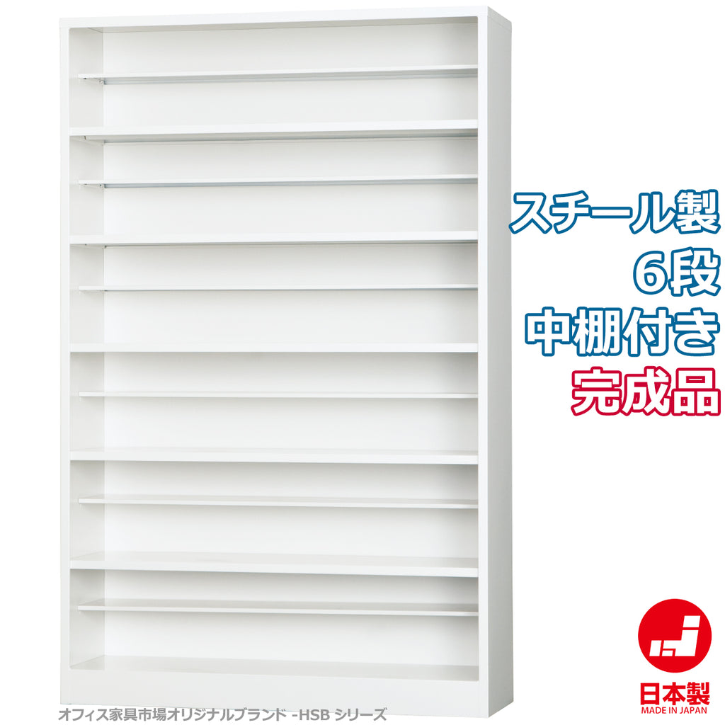 靴箱 オープンシューズボックス 6段 ホワイトグレー 固定スチール棚 中棚付き W1000×D330×H1590mm 42.2kg 完成品【オフィス家具市場】【日本製】【HSB-06T】