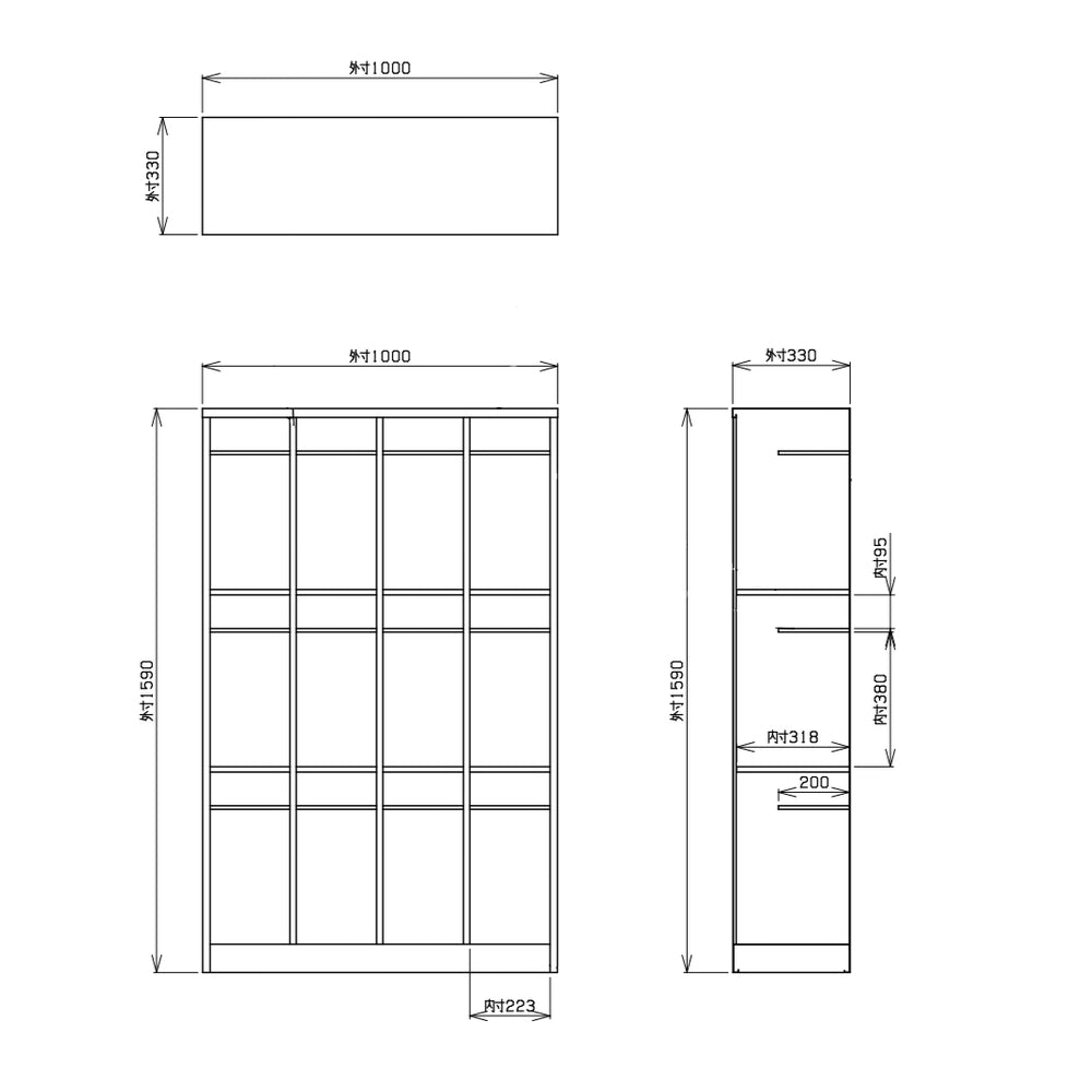 靴箱 オープンシューズボックス 4列3段 中棚付 ホワイトグレー 固定スチール棚 W1000×D330×H1590mm 35.3kg【オフィス家具市場】【日本製】【HSB-43T】