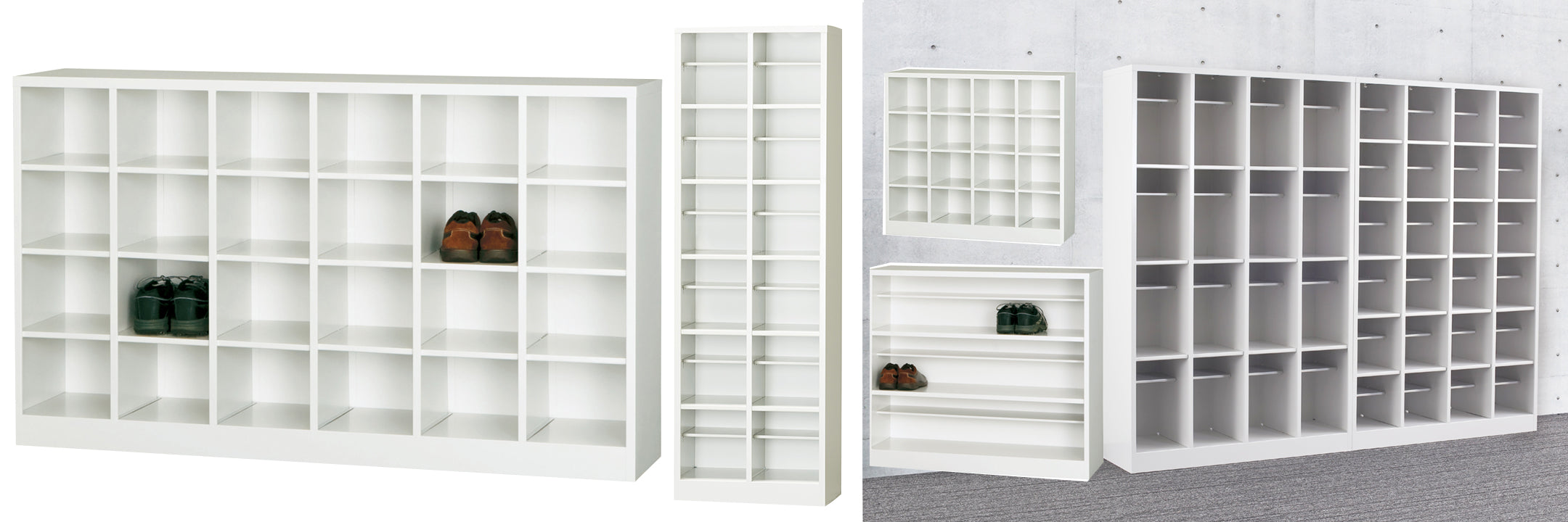 靴箱 オープンシューズボックス 6列4段 ホワイトグレー W1488×D330×H890mm 34.7kg【オフィス家具市場】【日本製】【HSB-64N】